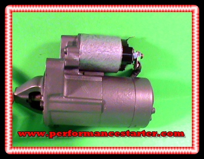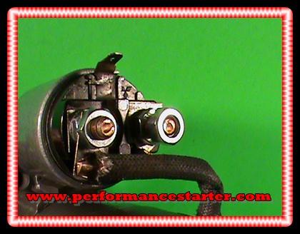 Side view.                                                                            Push on spade towards top of starter.  Battery post on right.